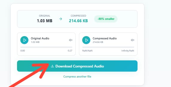 Once compression is complete, download your optimized audio file to your device.