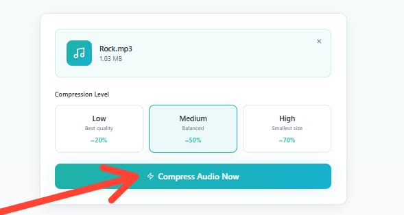 Clean interface, quick compression, and instant results. This audio compressor saved me a lot of time.