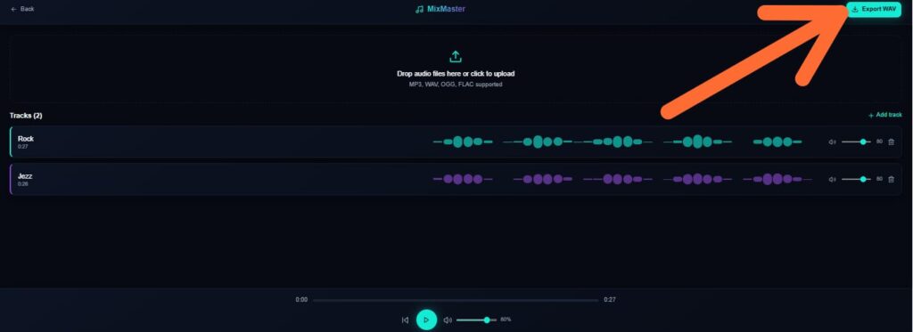 Export your mixed audio in MP3, WAV, or FLAC formats at studio quality.